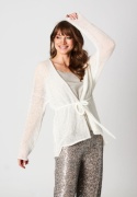 Lovina to elegancki i niezwykle lekki kardigan, który sprawdzi się przez cały rok. Dzięki klasycznemu krojowi z rozcięciem z przodu i paskiem pięknie podkreśla talię i daje możliwość różnych stylizacji.