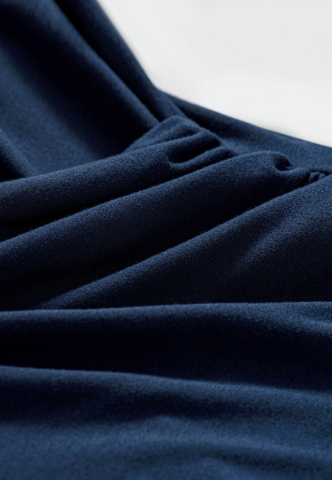 - Dekolt w kształcie V – pięknie podkreśla szyję i ramiona.